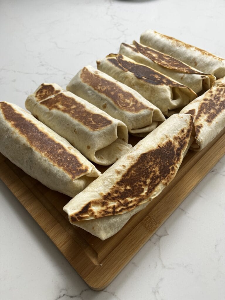 Gently press each burrito seam-side down on a hot pan to seal and lightly crisp the tortilla.